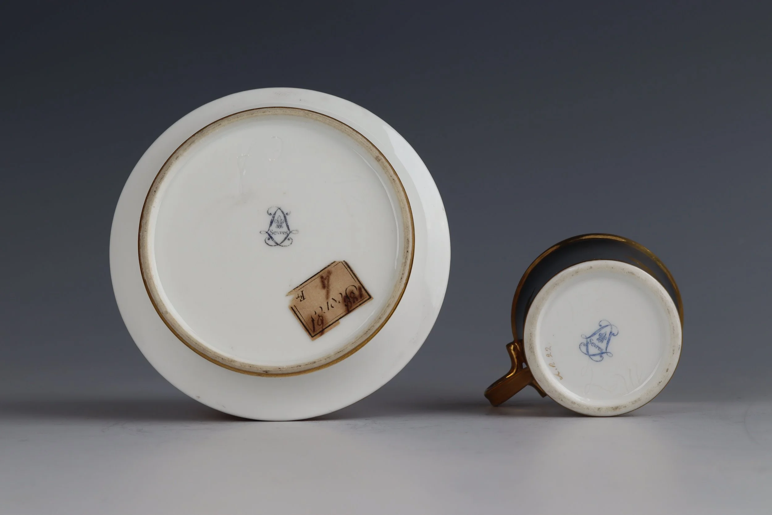 La soucoupe porte une étiquette d’origine avec l’inscription : Sèvres, 188-61, 4Fr